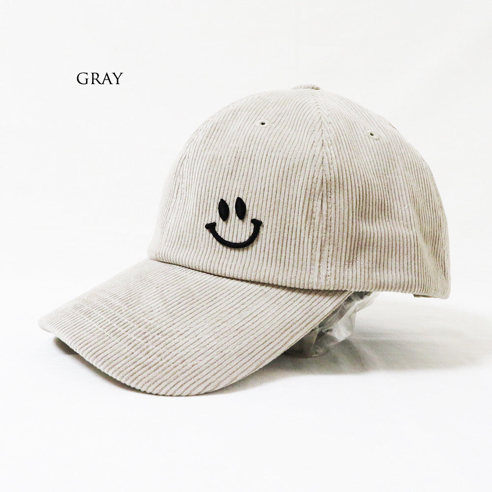 人氣商品 燈芯絨風格製作的微笑刺繡帽 灰色 STR009
