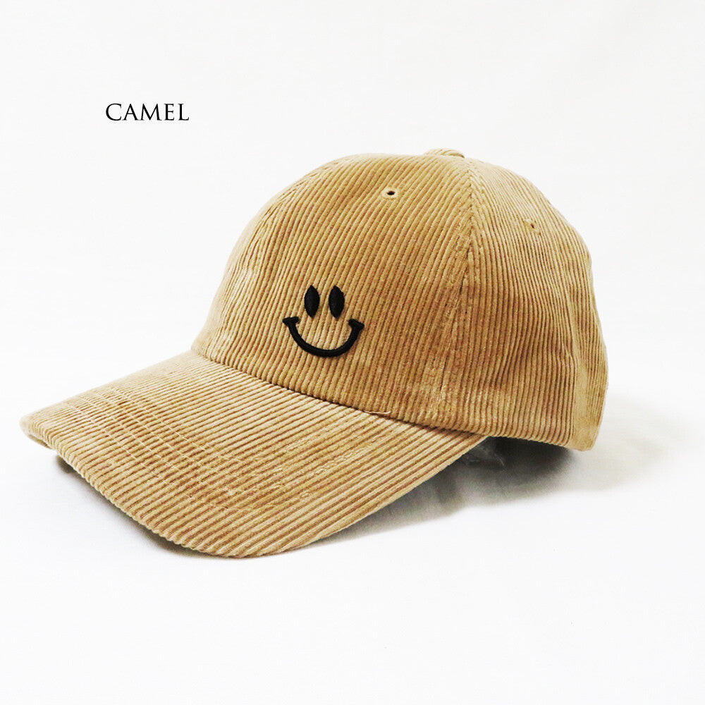 人氣商品 燈芯絨風格製作的微笑刺繡帽 焦糖色 STR010