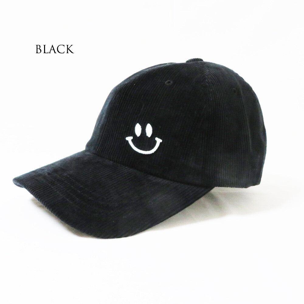 人氣商品 燈芯絨風格製作的微笑刺繡帽 黑色 STR007