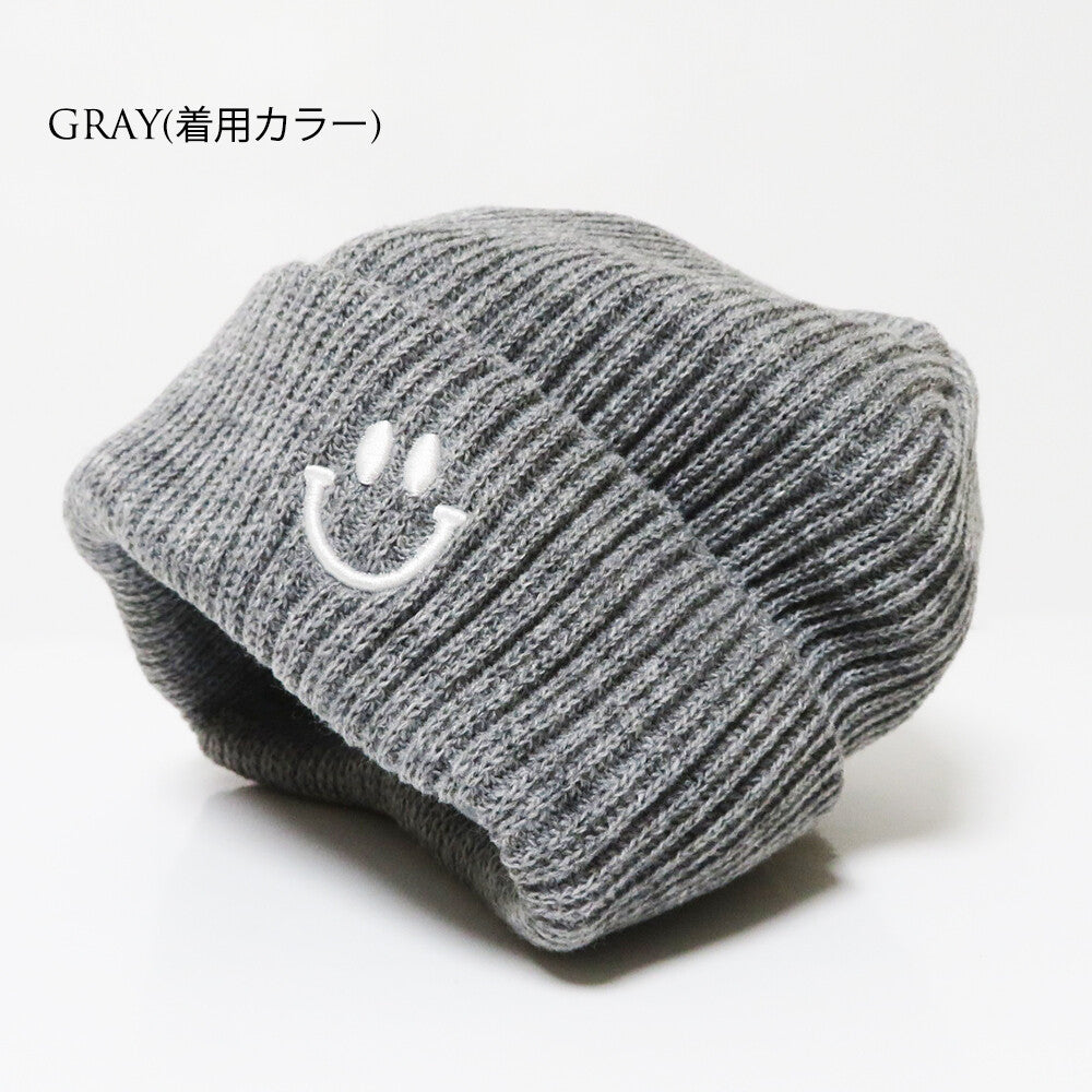 可愛的針織帽 繡花笑臉圖案 /灰色 STR016