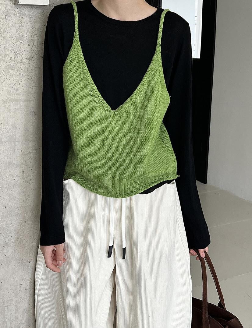 女裝上衣 背心 T恤 V領 4色 韓風 2025夏秋新款 /綠色 SBY001