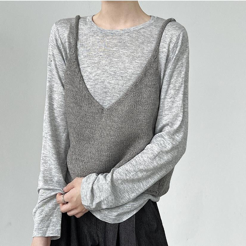 女裝上衣 背心 T恤 V領 4色 韓風 2025夏秋新款/灰色 SBY004