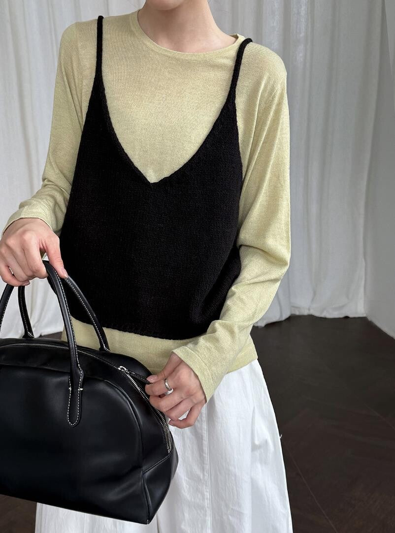 女裝上衣 背心 T恤 V領 4色 韓風 2025夏秋新款 /黑色 SBY003