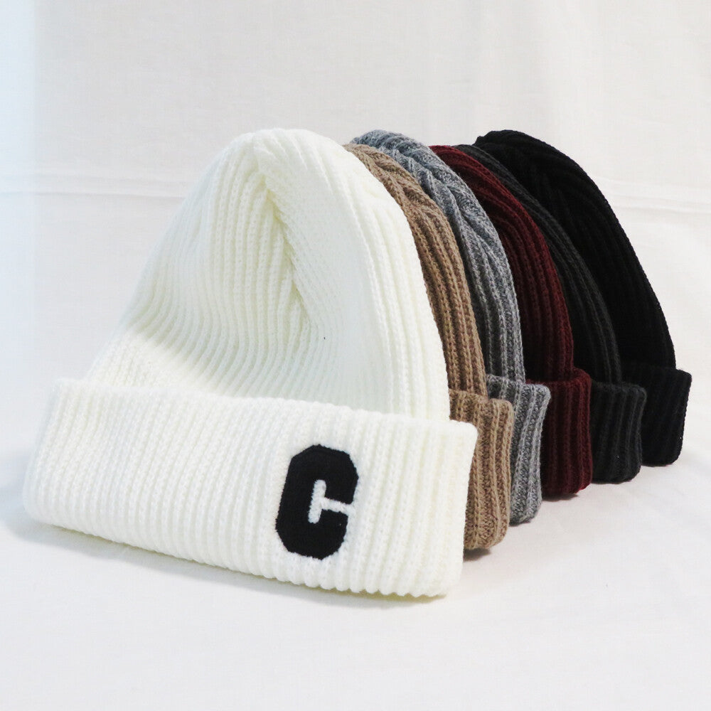 針織帽 字母標誌 人氣的C 針織羅紋帽 / 白色 STR006