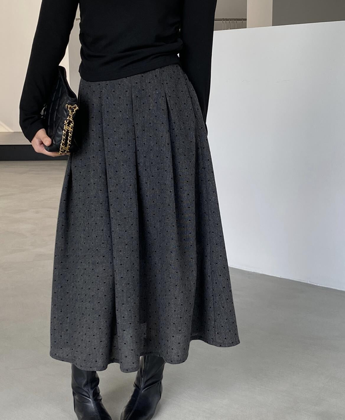 這款秋季新作高腰裙,能最大程度地展現女性魅力。是一件從通勤到日常小出遊都能廣泛活用的單品。容易搭配短款上衣,無論紮入或放出,都能擴展穿搭的多樣性。寬鬆的版型走動時裙擺飄逸,姿態優雅。