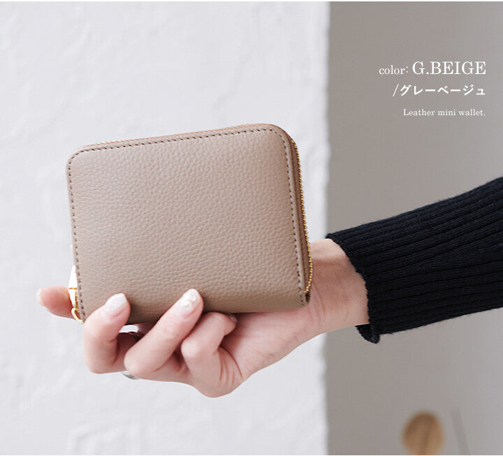 LIZDAYS 真皮迷你銀包 風琴式圓形拉鍊/附卡槽 /灰米色 STY001