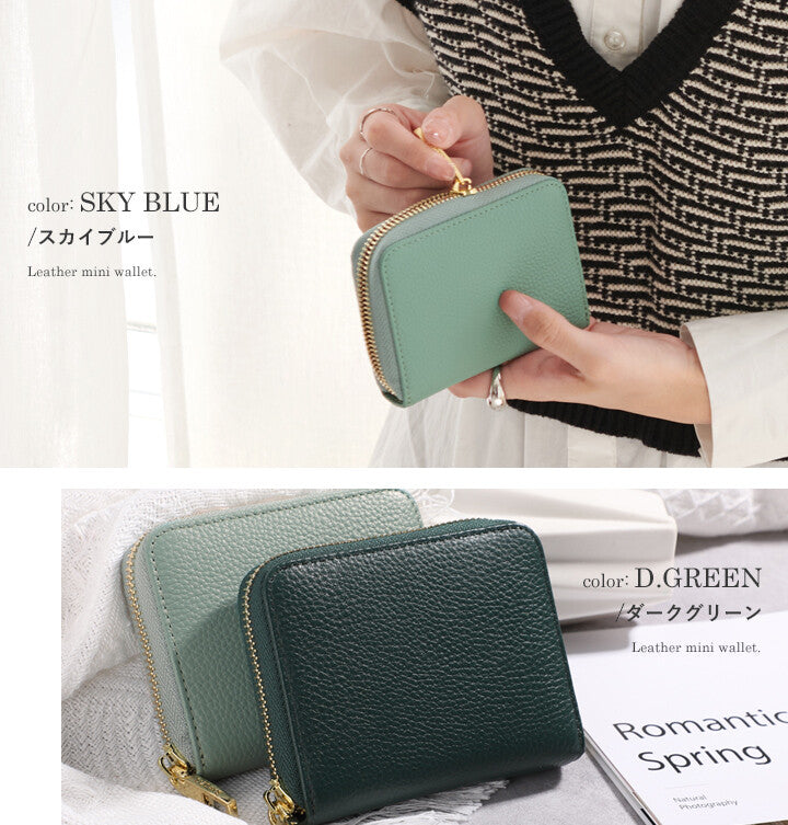LIZDAYS 真皮迷你銀包 風琴式圓形拉鍊/附卡槽 /天藍色 STY004